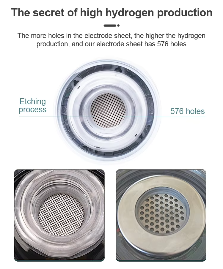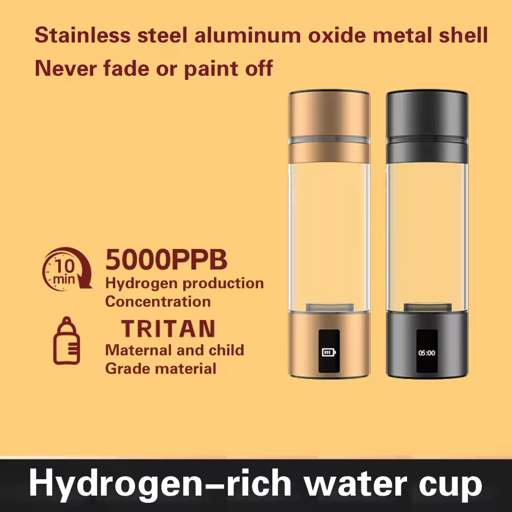Esta botella de tecnología y calidad Premium, produce hasta 5.000 ppb de H2, a través de un proceso de electrólisis de alta concentración de hidrógeno, mediante el cual la molécula de agua es separada en sus componentes básicos de hidrógeno y oxígeno.