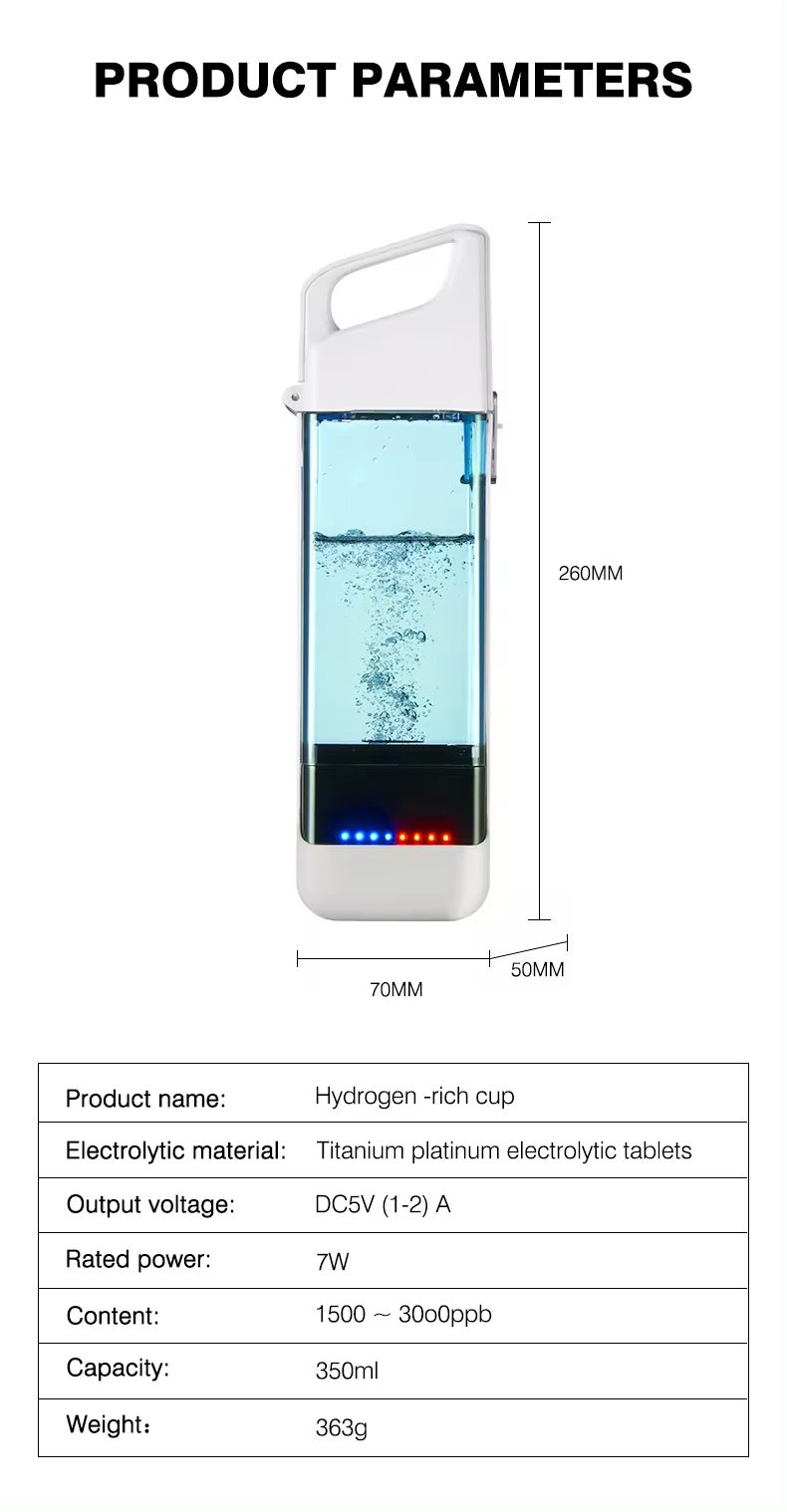 Esta botella de fácil portabilidad, produce hasta 3.000 ppb de H2, a través de un proceso de electrólisis, mediante el cual la molécula de agua es separada en sus componentes básicos de hidrógeno y oxígeno.