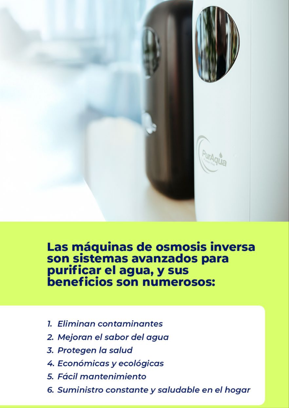 PurAqua OI no es solo un sistema de filtración, es una pieza de tecnología avanzada diseñada para ofrecer agua pura en todo momento. Equipado con un sistema de filtración por ósmosis inversa y un panel inteligente que monitorea el estado del filtro, este dispositivo compacto redefine la pureza del agua con eficiencia y estilo. Perfecto para cualquier espacio, desde cocinas hasta oficinas, garantiza agua libre de impurezas sin ocupar más espacio del necesario.
