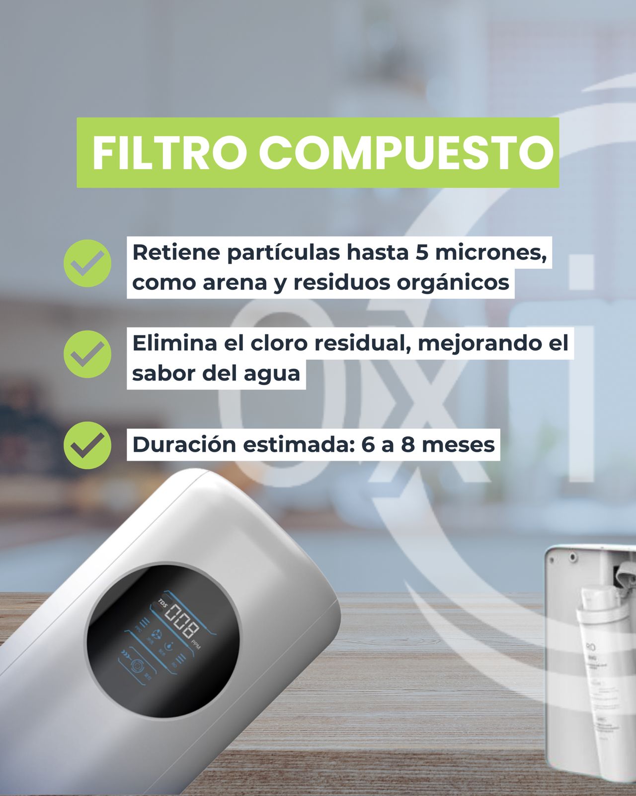 Con un diseño moderno y discreto, PurAqua OI combina a la perfección innovación y simplicidad. Su avanzado sistema de filtración está encapsulado en un formato compacto y elegante que se adapta a cualquier espacio. Gracias a su pantalla inteligente, monitorea el estado del filtro en tiempo real, garantizando que siempre disfrutes de agua pura y saludable, sin complicaciones ni desorden.